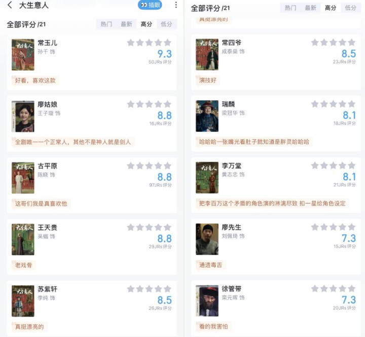 《大生意人》的演技评分,有人意料之中,有人爆冷争议。